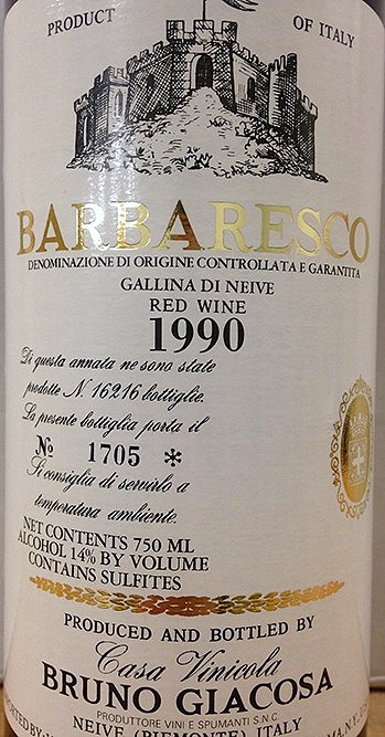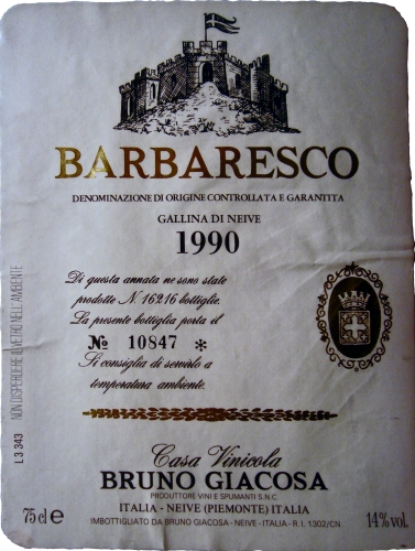 Bruno Giacosa Barbaresco Gallina di Neive 1990