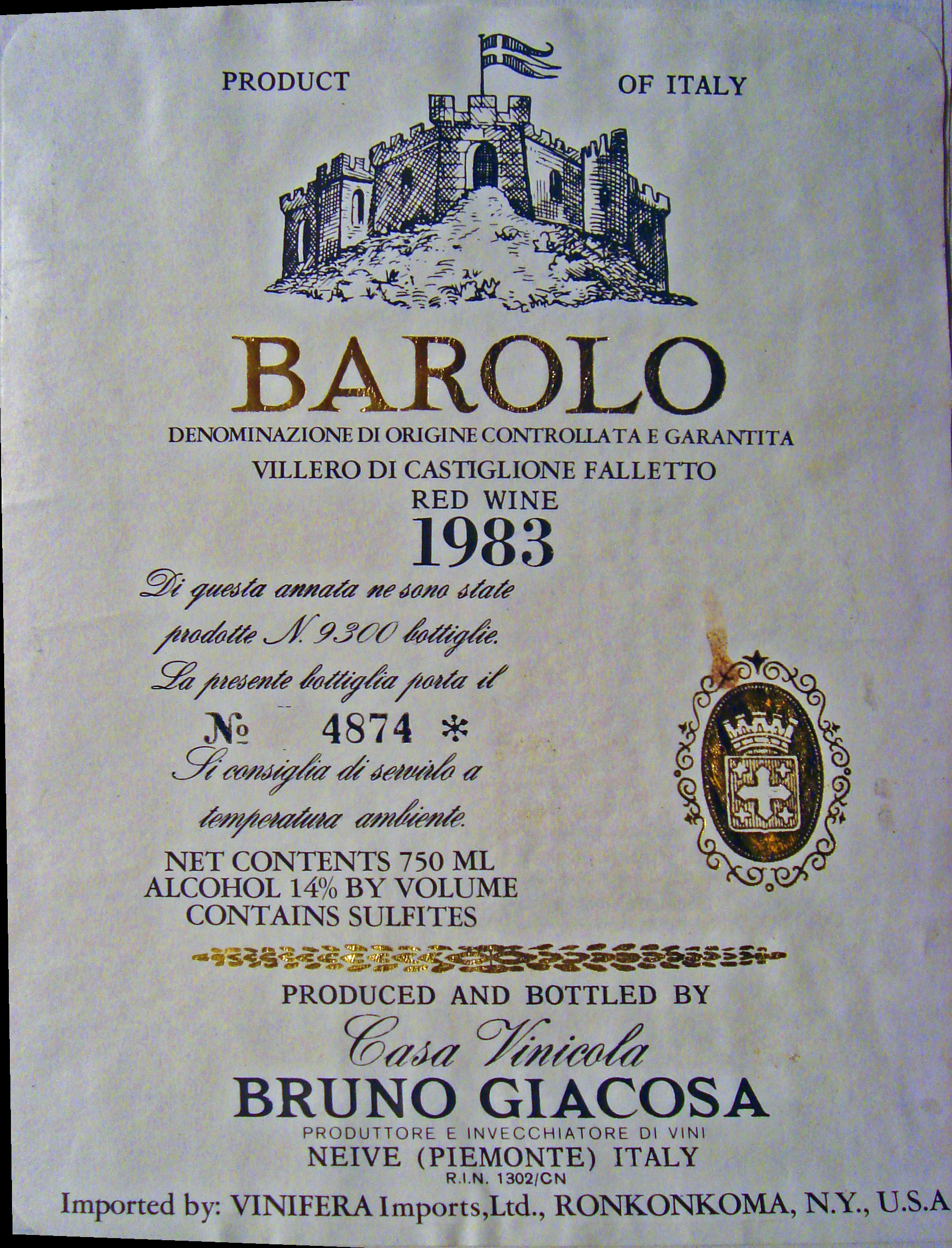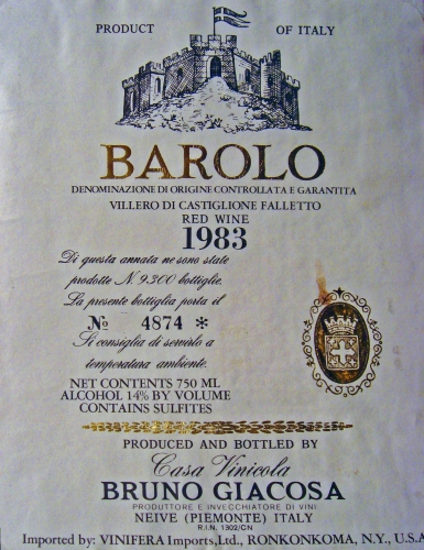 Bruno Giacosa Barolo Villero di Castiglione Falletto 1983