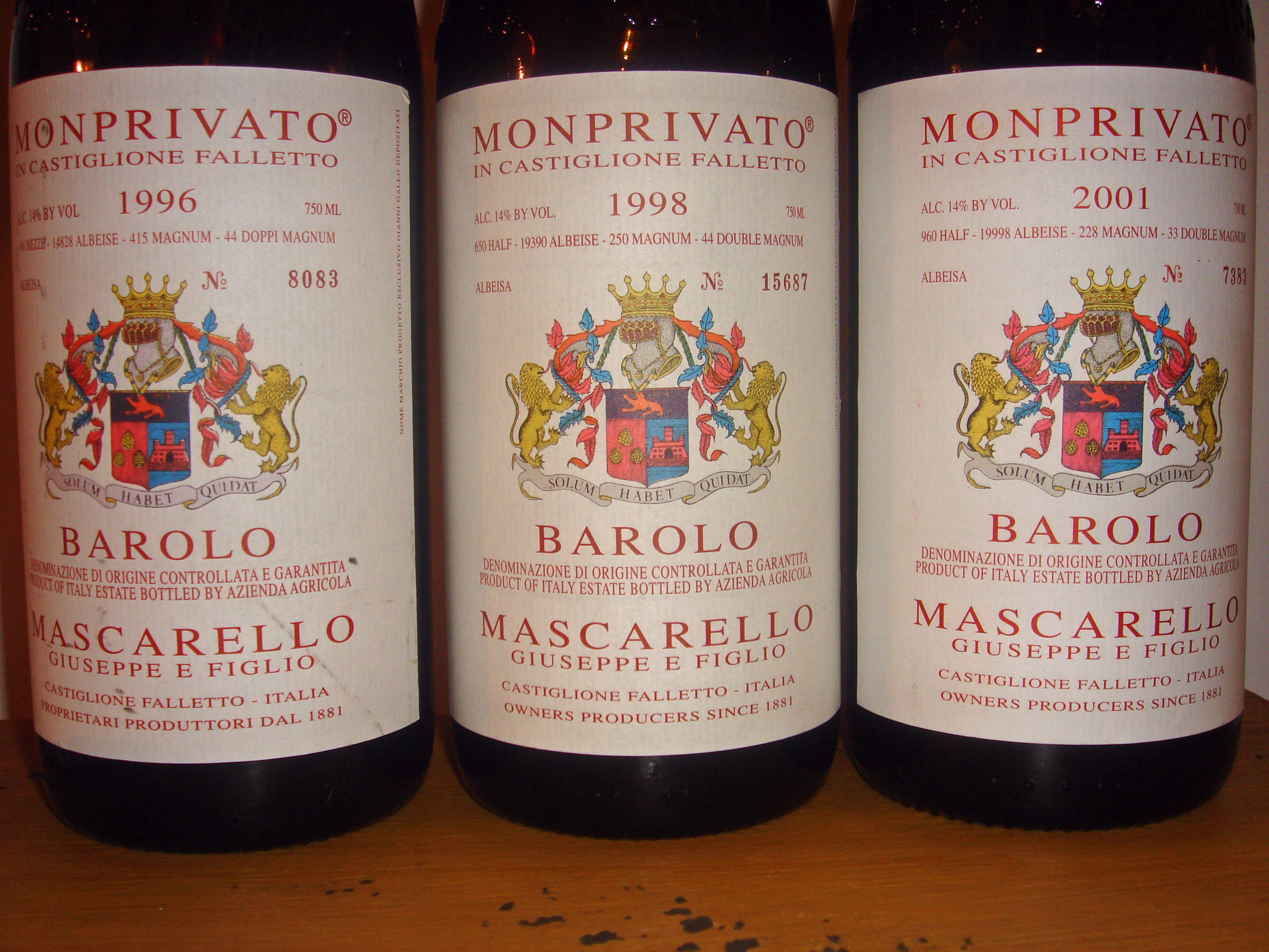 Flight 1: The 2001, 1999, 1998, and 1996 Monprivatos in reverse chronological order.