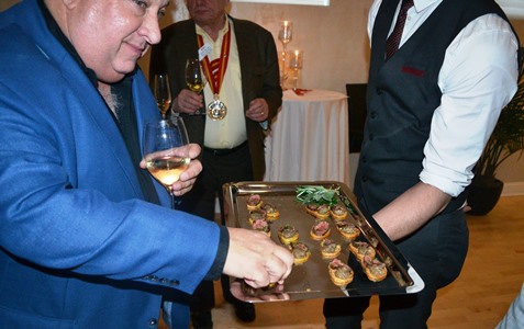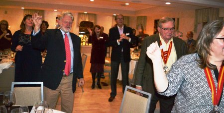 Grand Sénéchal Joel Hodes encourages everyone to sit down to dinner.