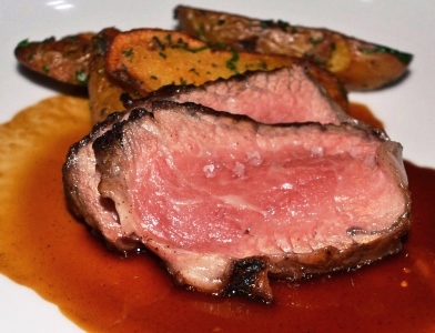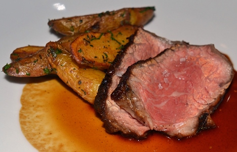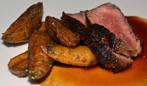 Prime Ribeye Steak, Duck Fat Fingerling Potatoes, Sauce Bordelaise.