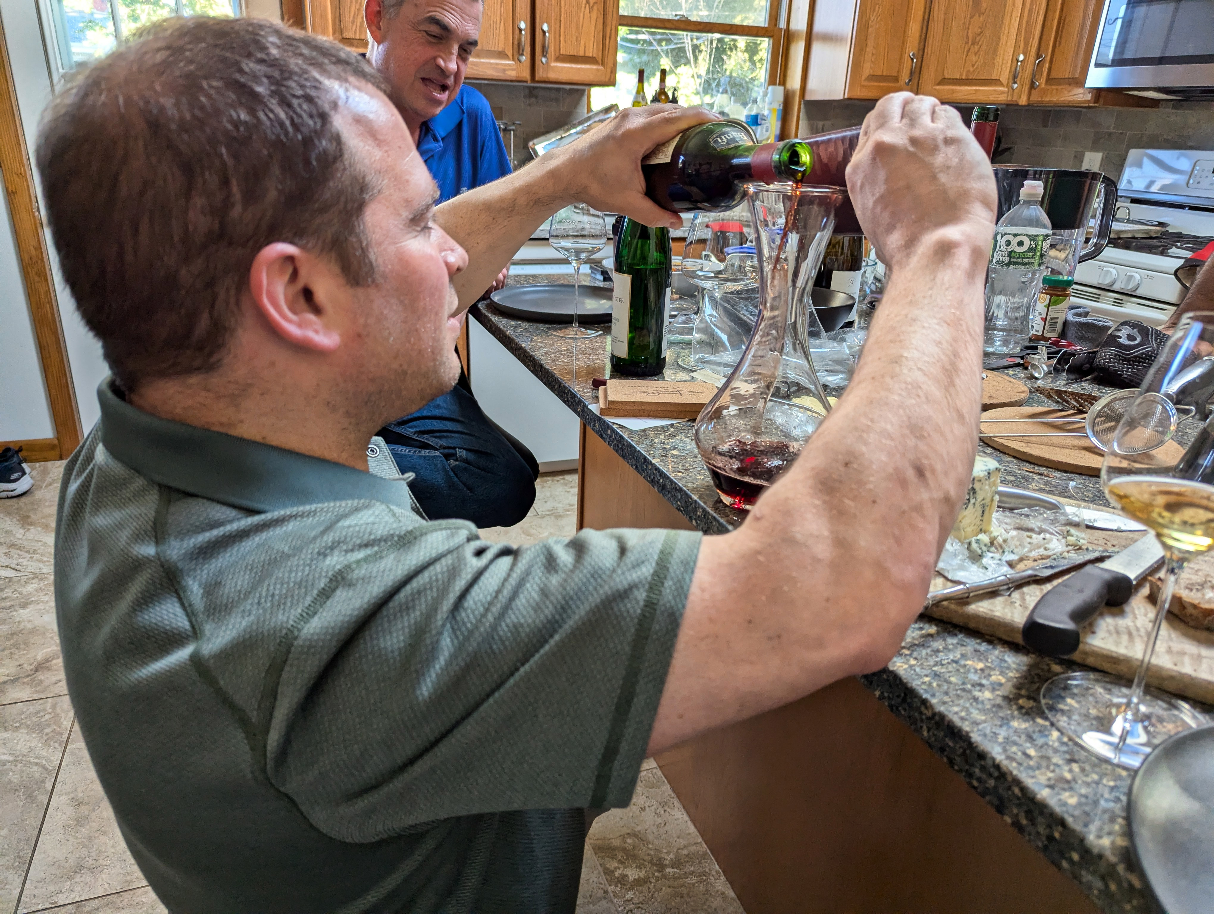 Jared decants the 1970 Pichon Baron, while Gil watches: