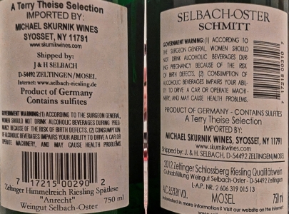 2012 Selbach-Oster Zeltinger Schlossberg Riesling 'Schmitt' -
