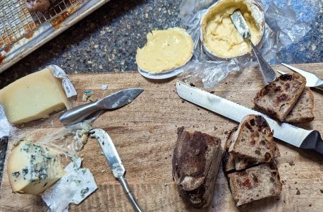 Gil brought some great cheese and bread. Salil made his famous chicken thighs.