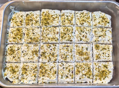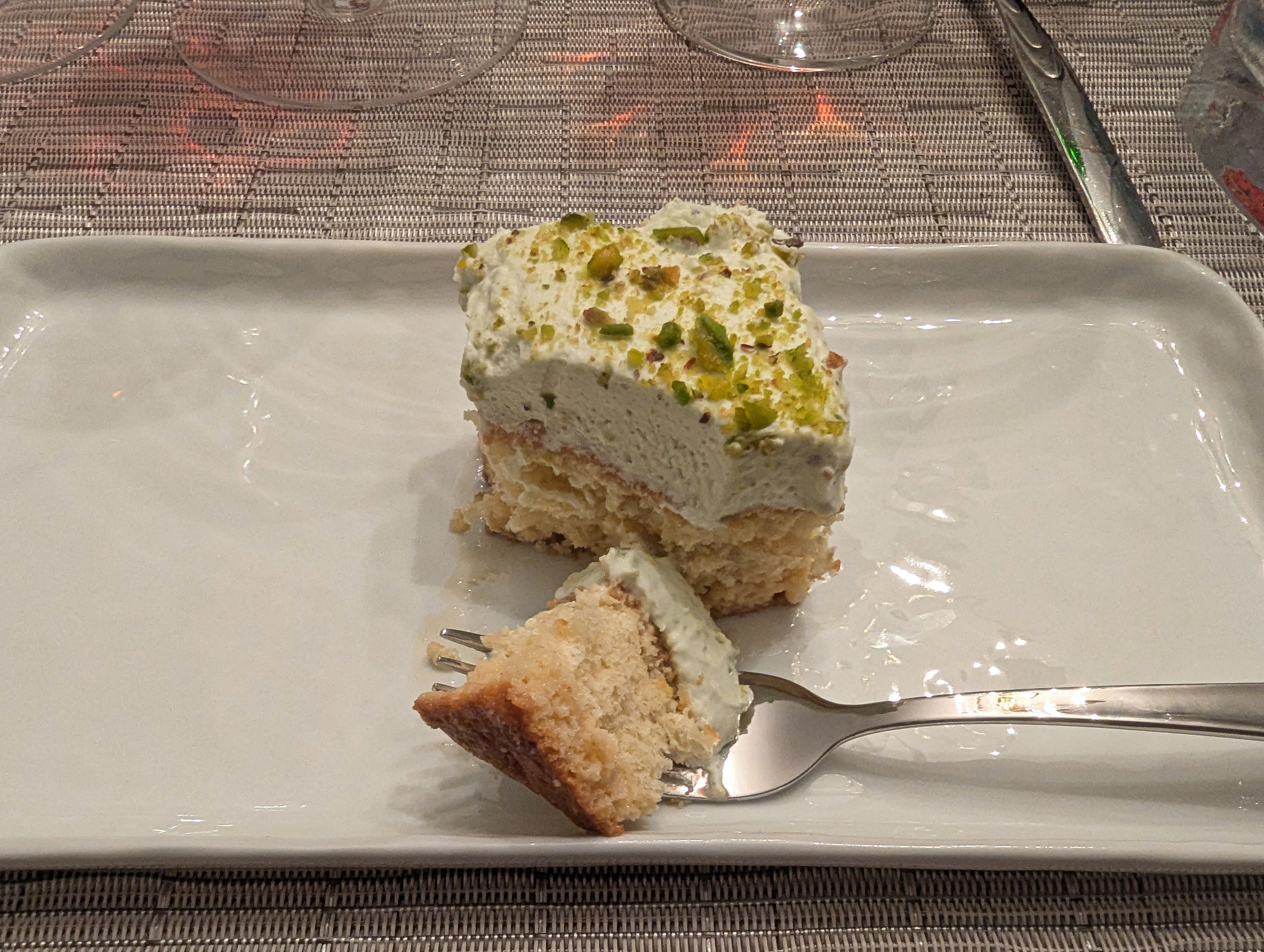 With Salil's fabulous cardamom-pistachio tres leches cake and the blue cheese and bread.