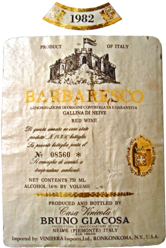 Giacosa Barbaresco Gallina di Neive 1982
