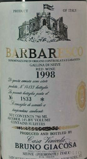 Bruno Giacosa Barbaresco Gallina di Neive 1998