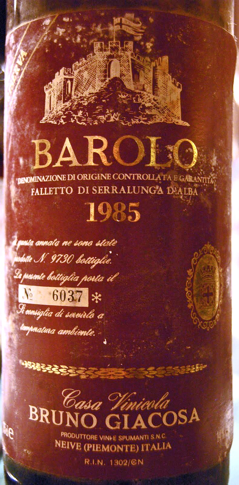Bruno Giacosa Barolo Riserva Falletto di Serralunga d'Alba 1985