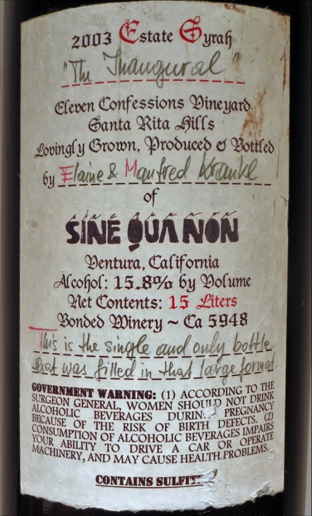 A 15-liter bottle of The Inaugural Syrah, a Nebuchadnezzar