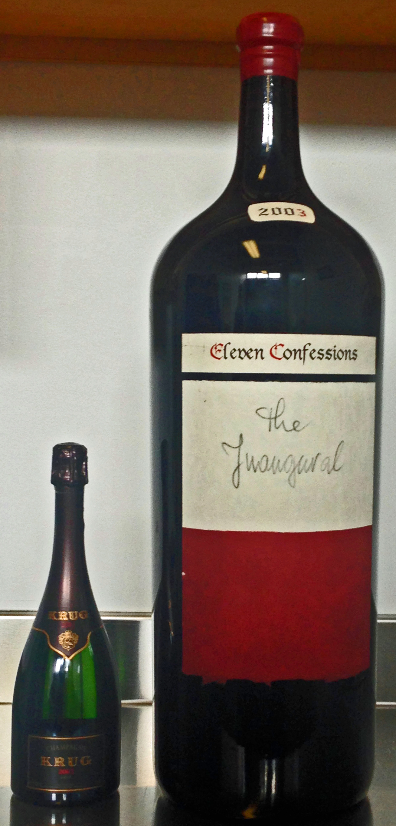 In the first photo, this bottle is shown next to a standard 750ml Krug 2003 for size comparison.