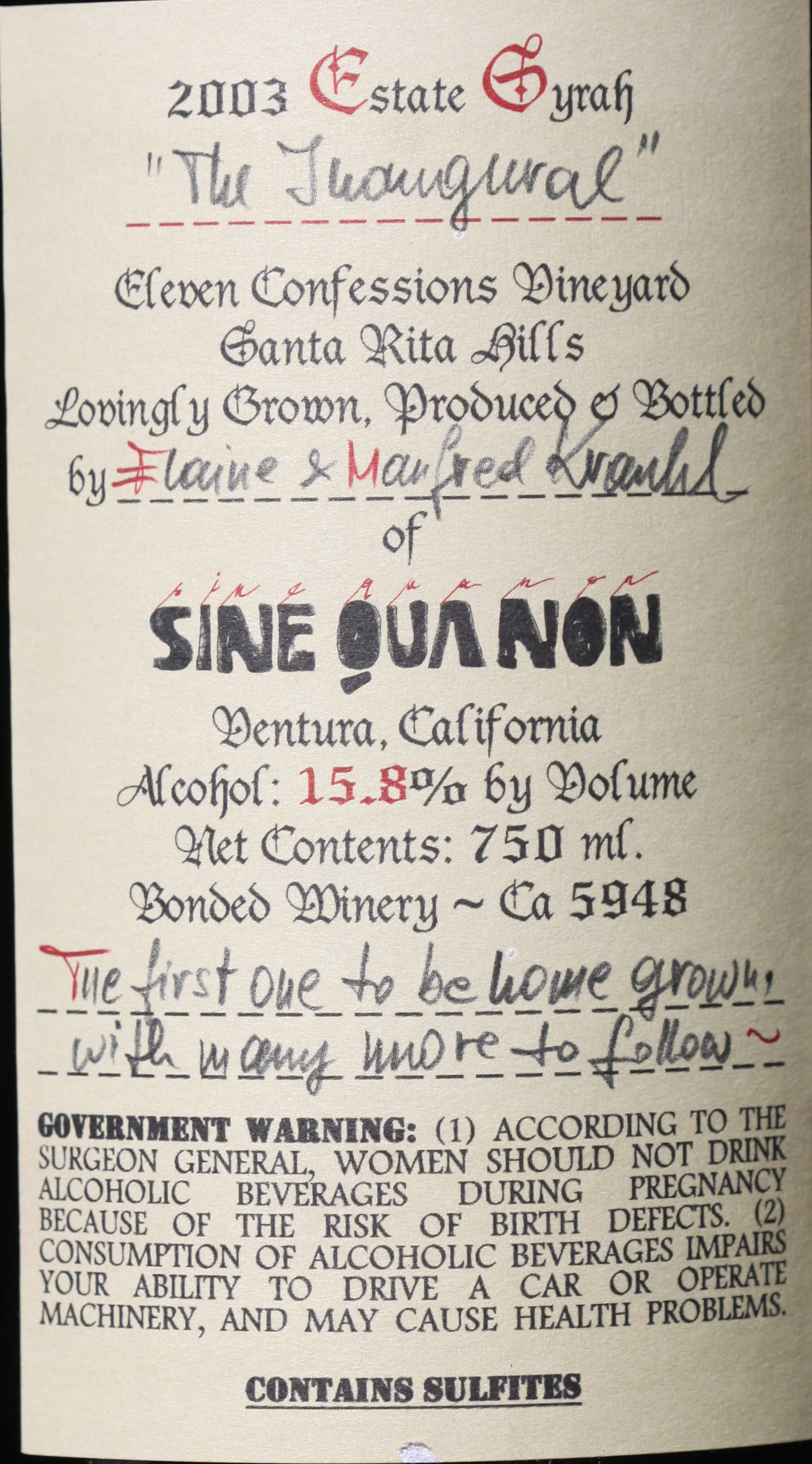 5 bottles of The Inaugural Syrah were sold in a box set with 1 bottle of