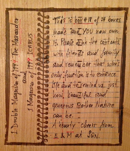 24 three-liter bottles of The Marauder Syrah were made.