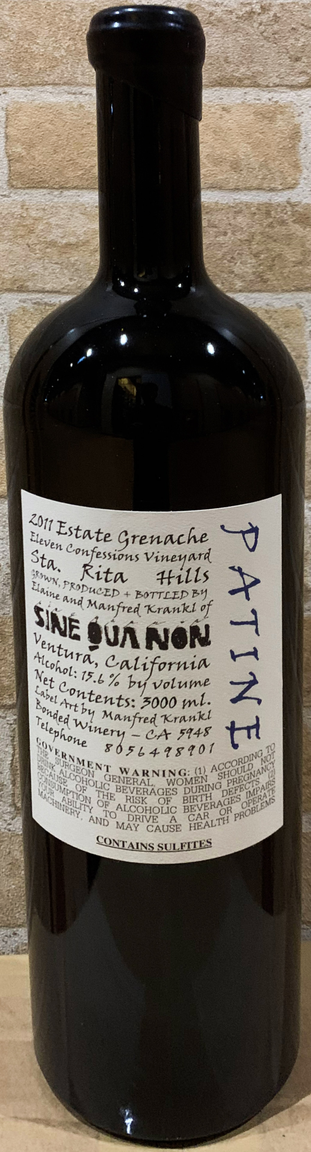 with 3 bottles of 2011 Patine Grenache