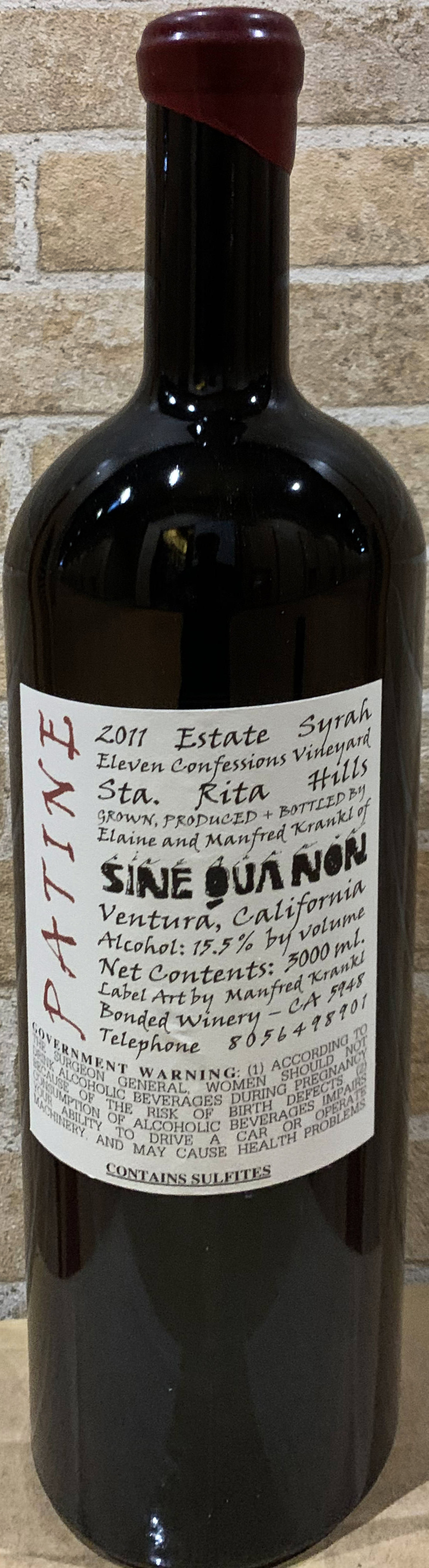 and 3 bottles of 2011 Patine Syrah.