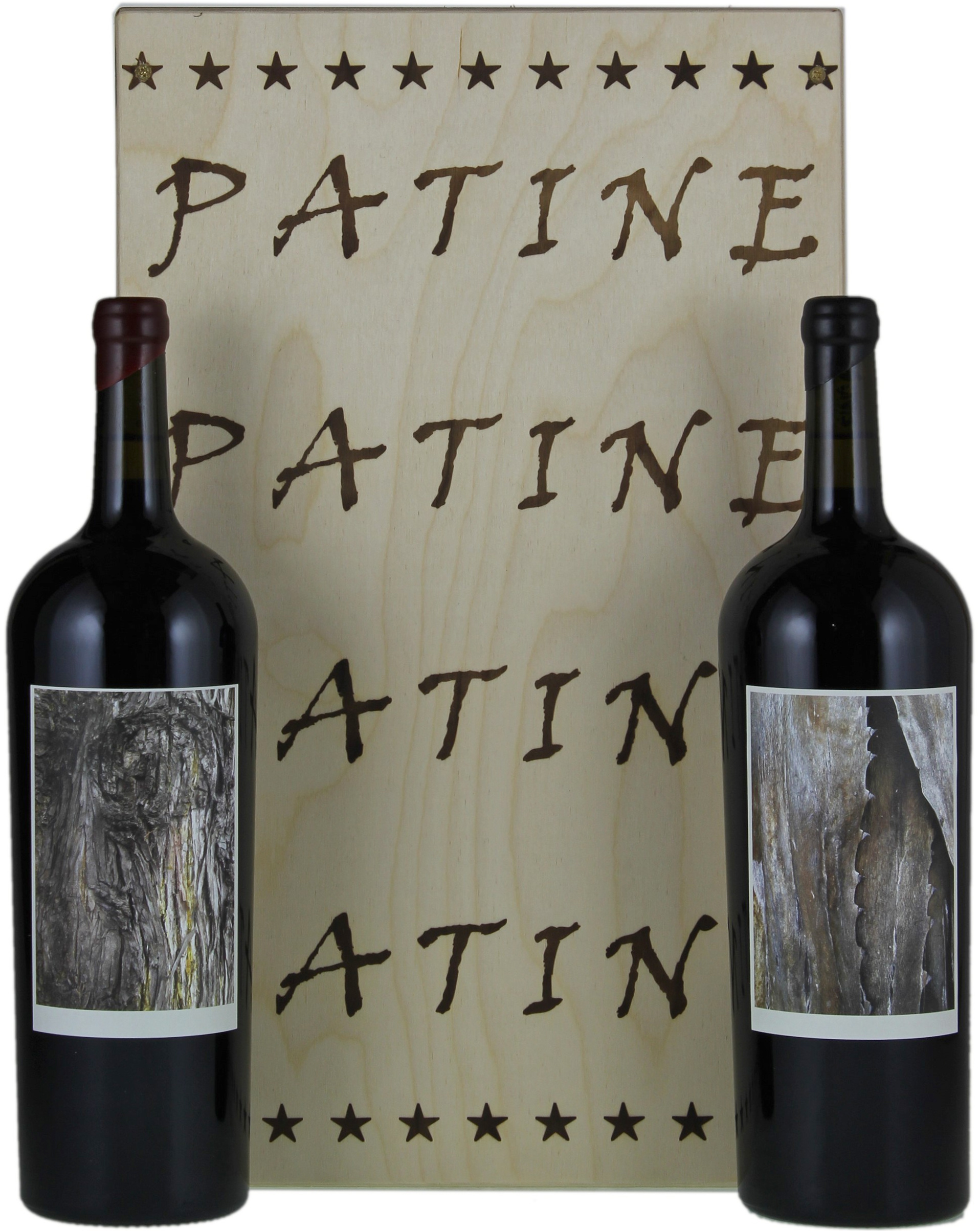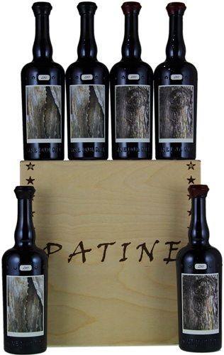 Regular size bottles (750ml) of the Patine wines came in a wooden-boxed set