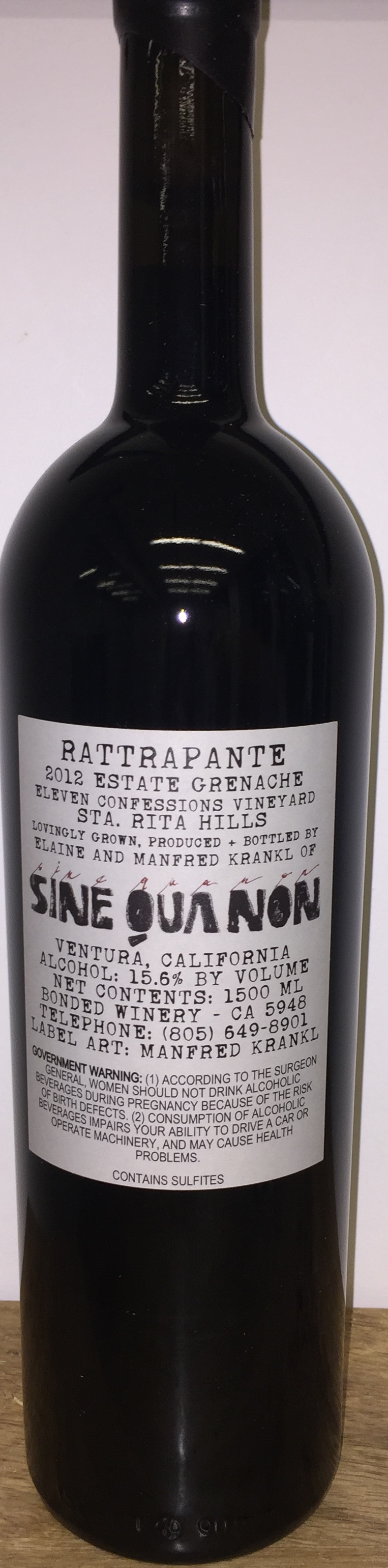 One double magnum (3 liters) each of 2012 Rattrapante Grenache and