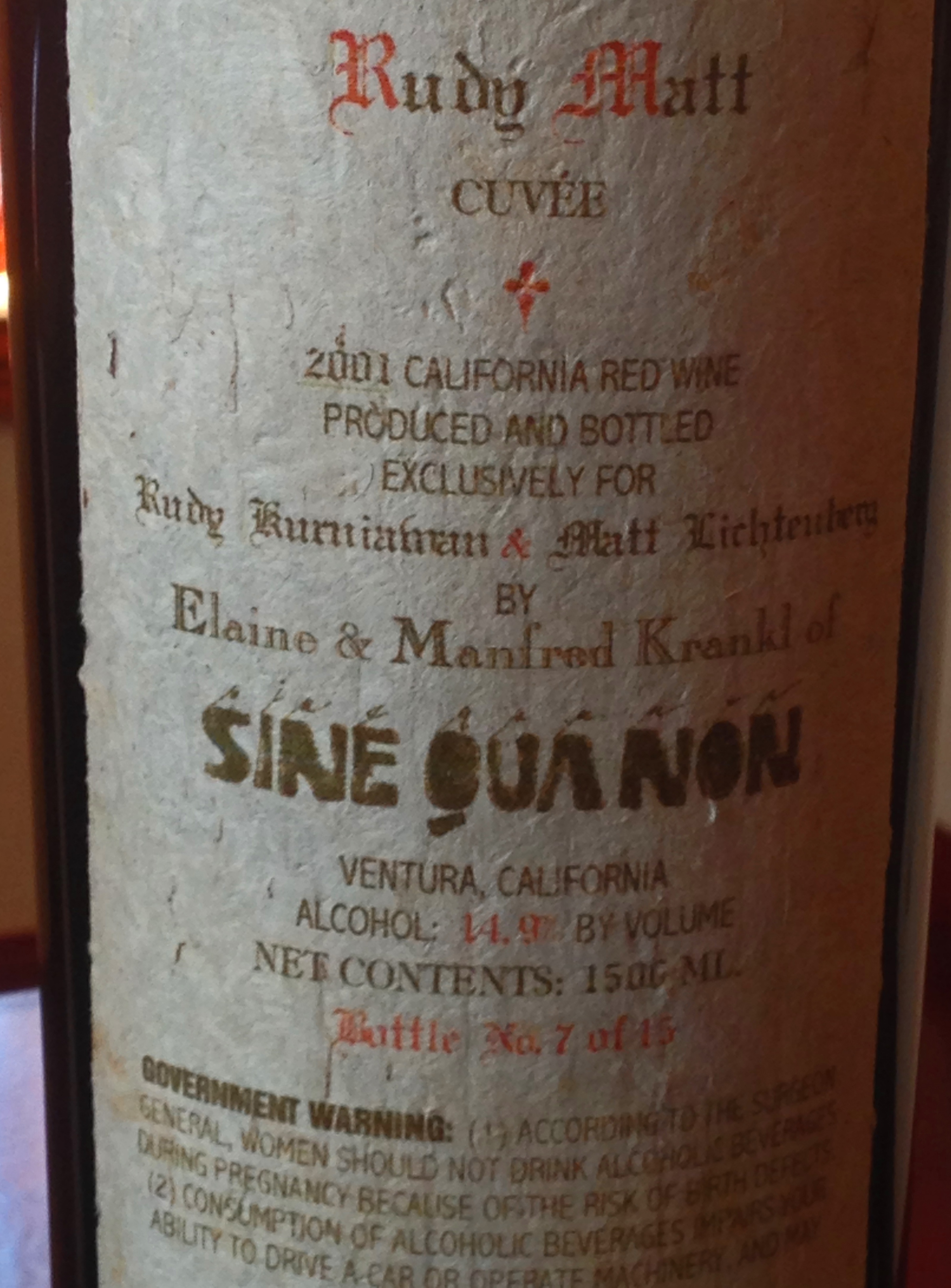 Note that the magnums are numbered on the back label. This is number 7 of 15 magnums.