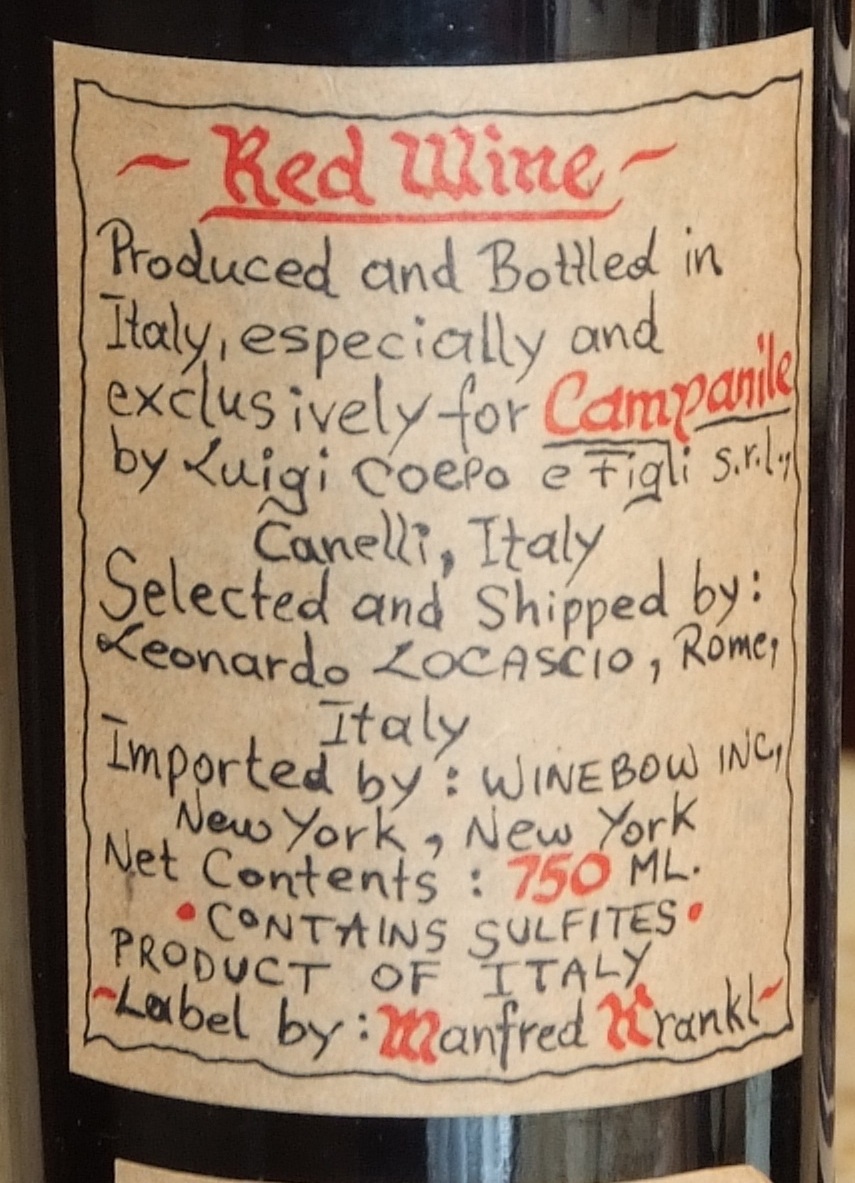 This wine is one of several "Project Wines" made by Manfred before the winery was founded.