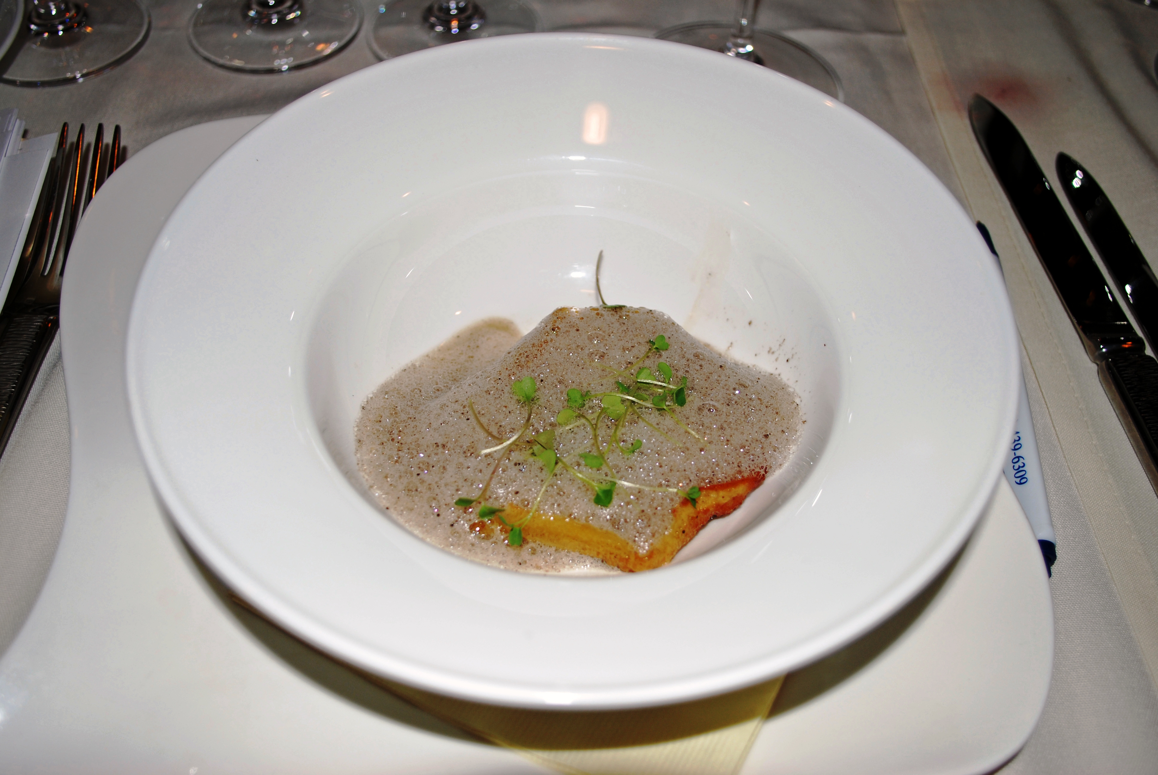 With Kobe Ravioli (though there's only one) with Truffle & Chestnut Emulsion.