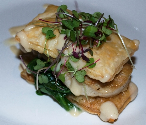 Baby Spoon Spinach, Savory Puff Pastry and Roasted Garlic Supreme.
