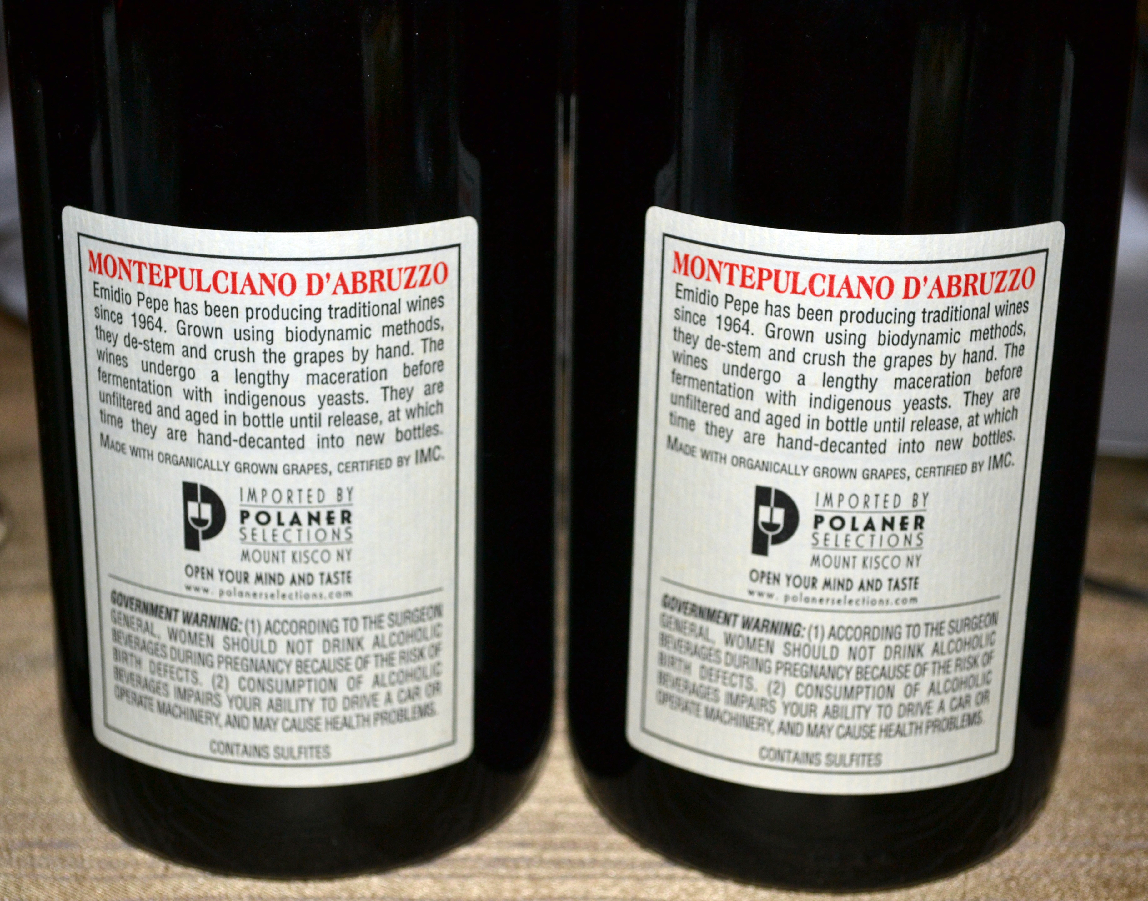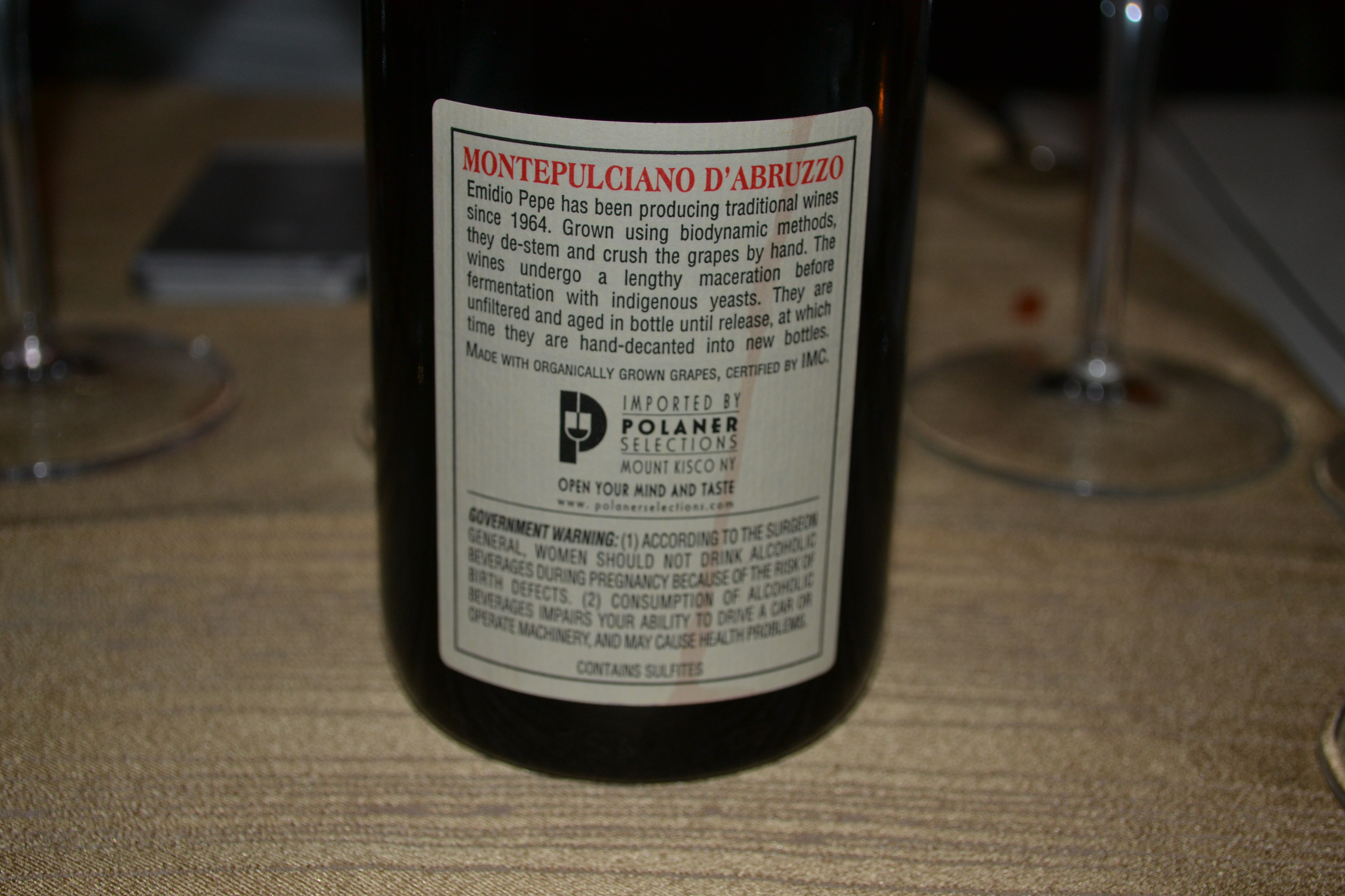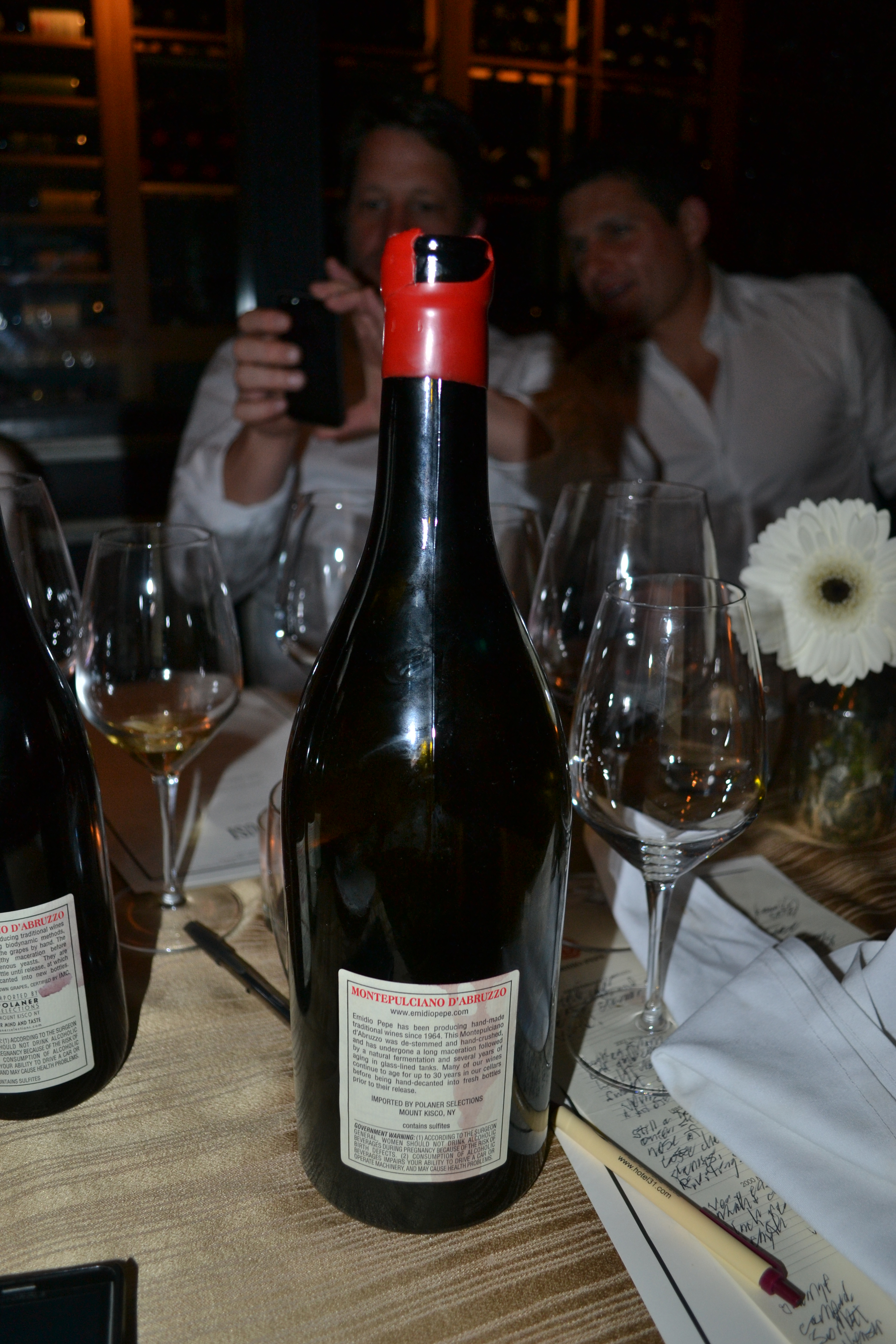 The wines were opened but not decanted (as per Emidio's instructions) at around 5:30pm.