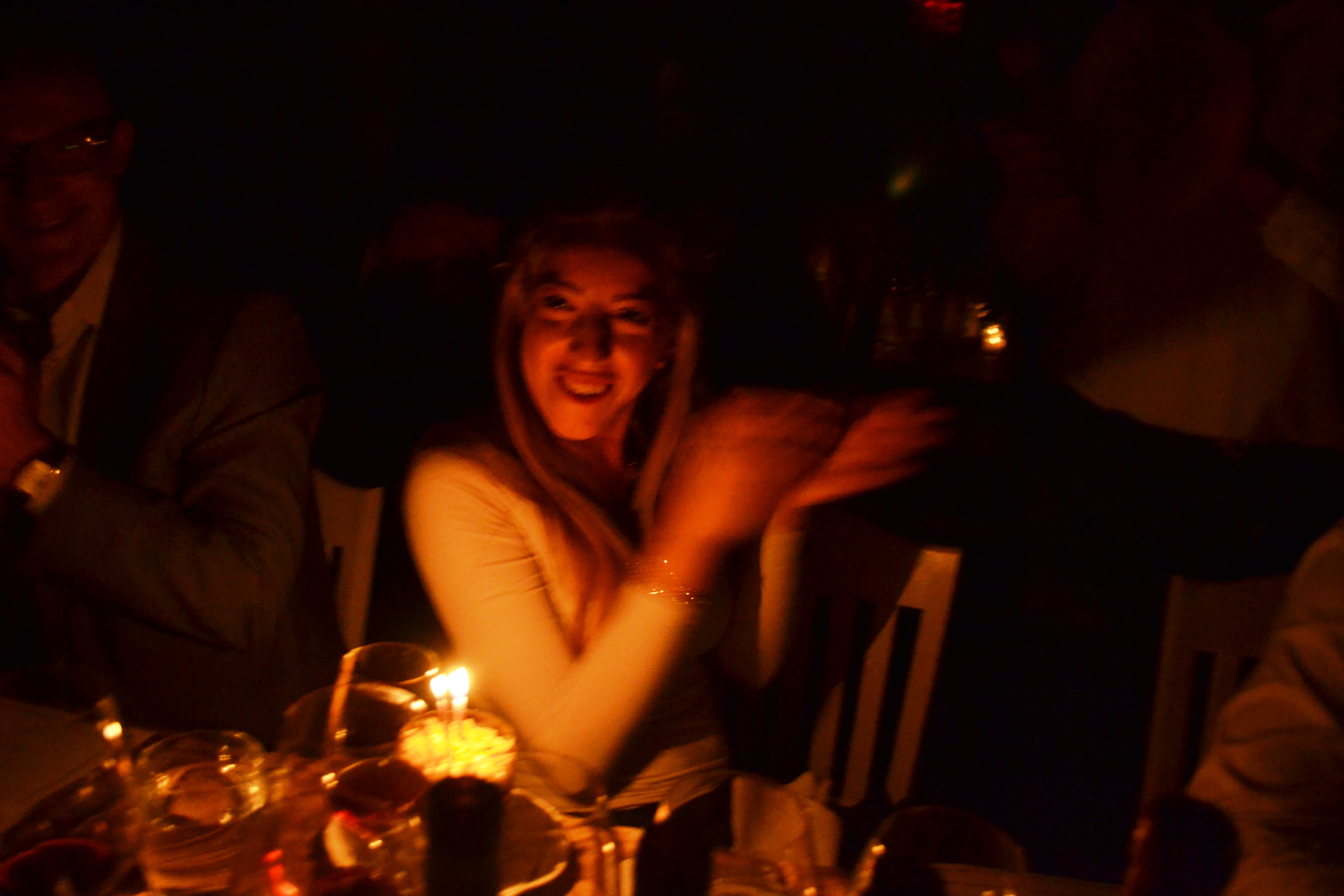 Chiara is surprised on her birthday with candle in her dessert.