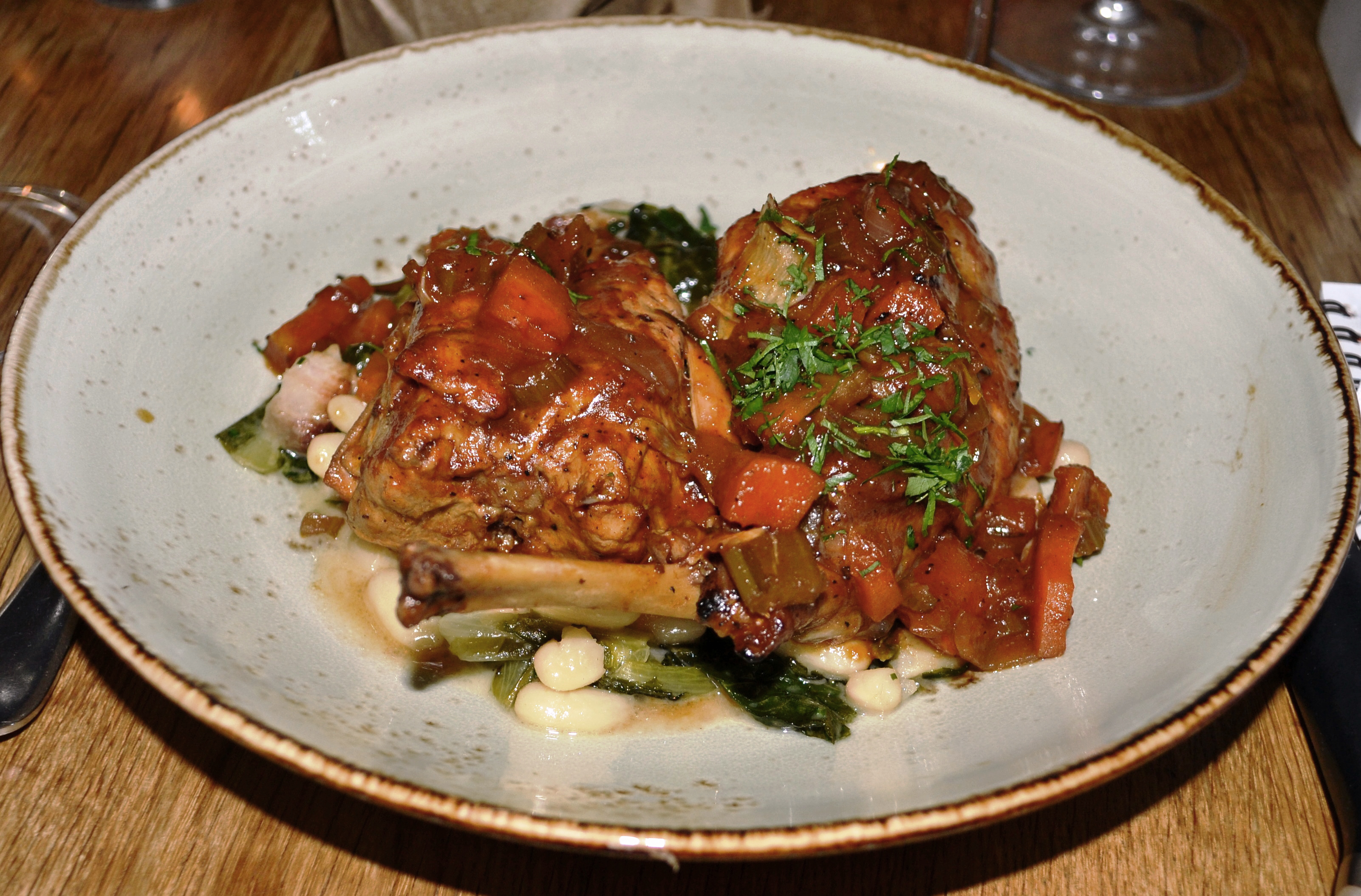 The rabbit was so-so, but the greens and beans underneath were delicious.