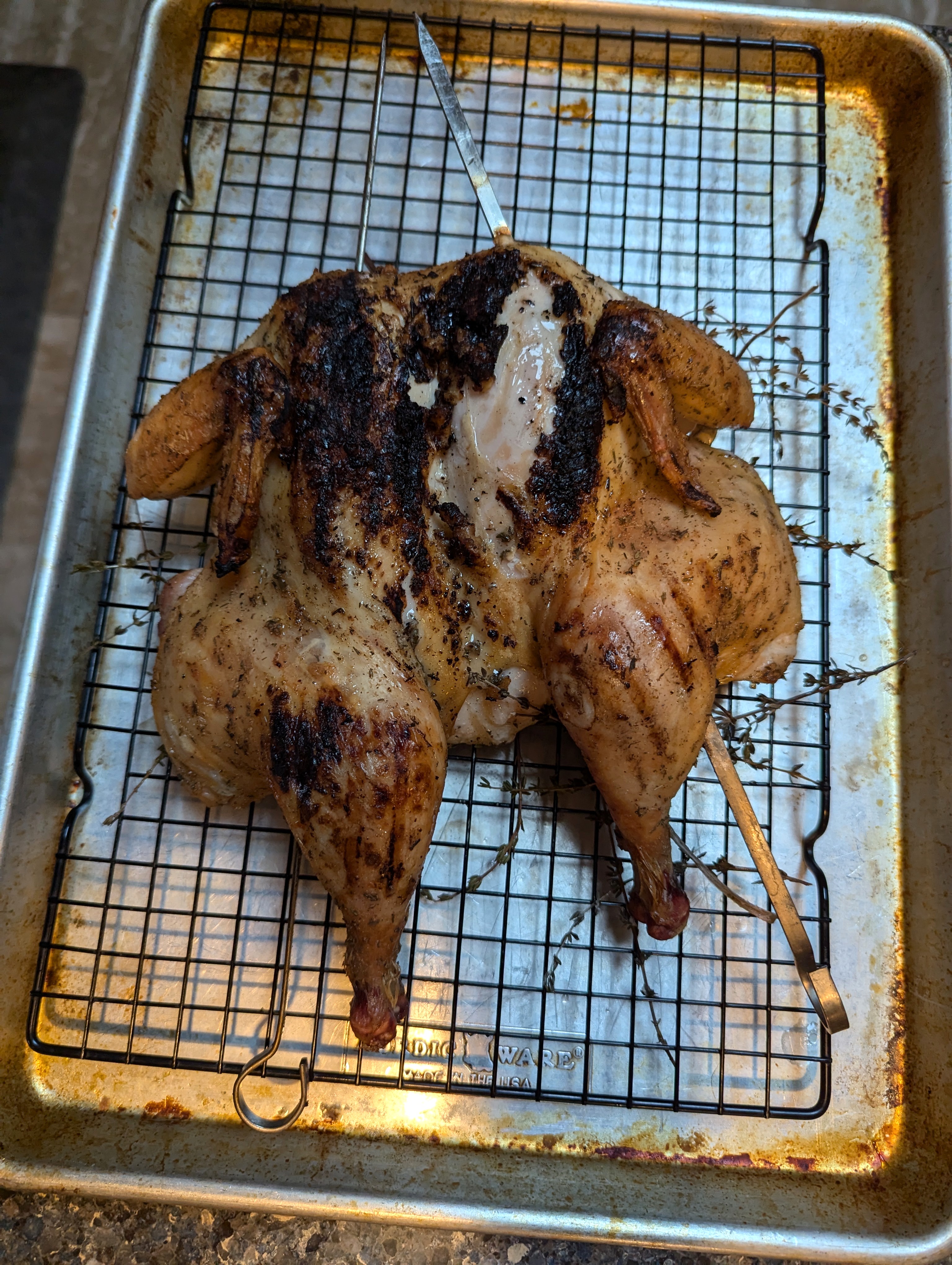 Spatchcock Smoked Chicken on the grill:
